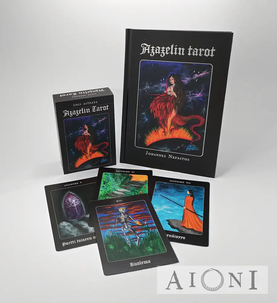 Azazelin tarot -korttipakan on maalannut Iiris Astraya. Pakka sisältää 92 korttia. Korttien koko 126 x 88 mm.